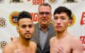 カニサレスの右ストレートでビンがダウン、明らかに効いていて立つがフラフラ、レフリーが抱きかかえ試合終了。
